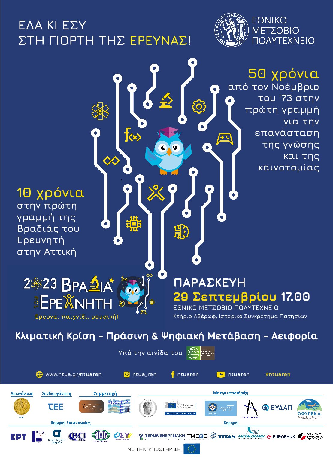 Αύριο, Παρασκευή, 29 Σεπτεμβρίου 2023, από τις 17:00 μέχρι τις 22:00, το Εθνικό Μετσόβιο Πολυτεχνείο (ΕΜΠ) ανοίγει τις πύλες του στο κοινό και στη «Βραδιά του Ερευνητή».