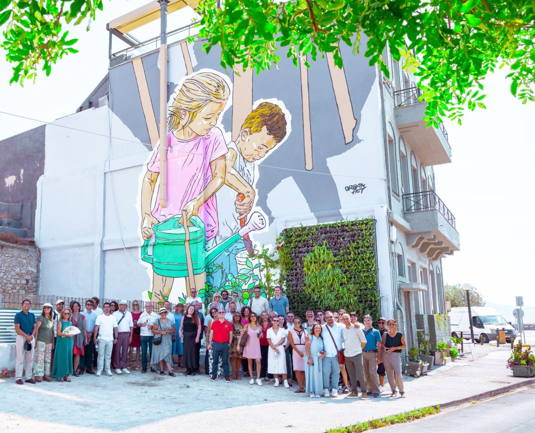 - Μεγάλη τοιχογραφία με κάθετο κήπο στο Μικρολίμανο, σε κτίριο ιδιοκτησίας του Χατζηκυριακείου ιδρύματος Παιδικής Προστασίας.