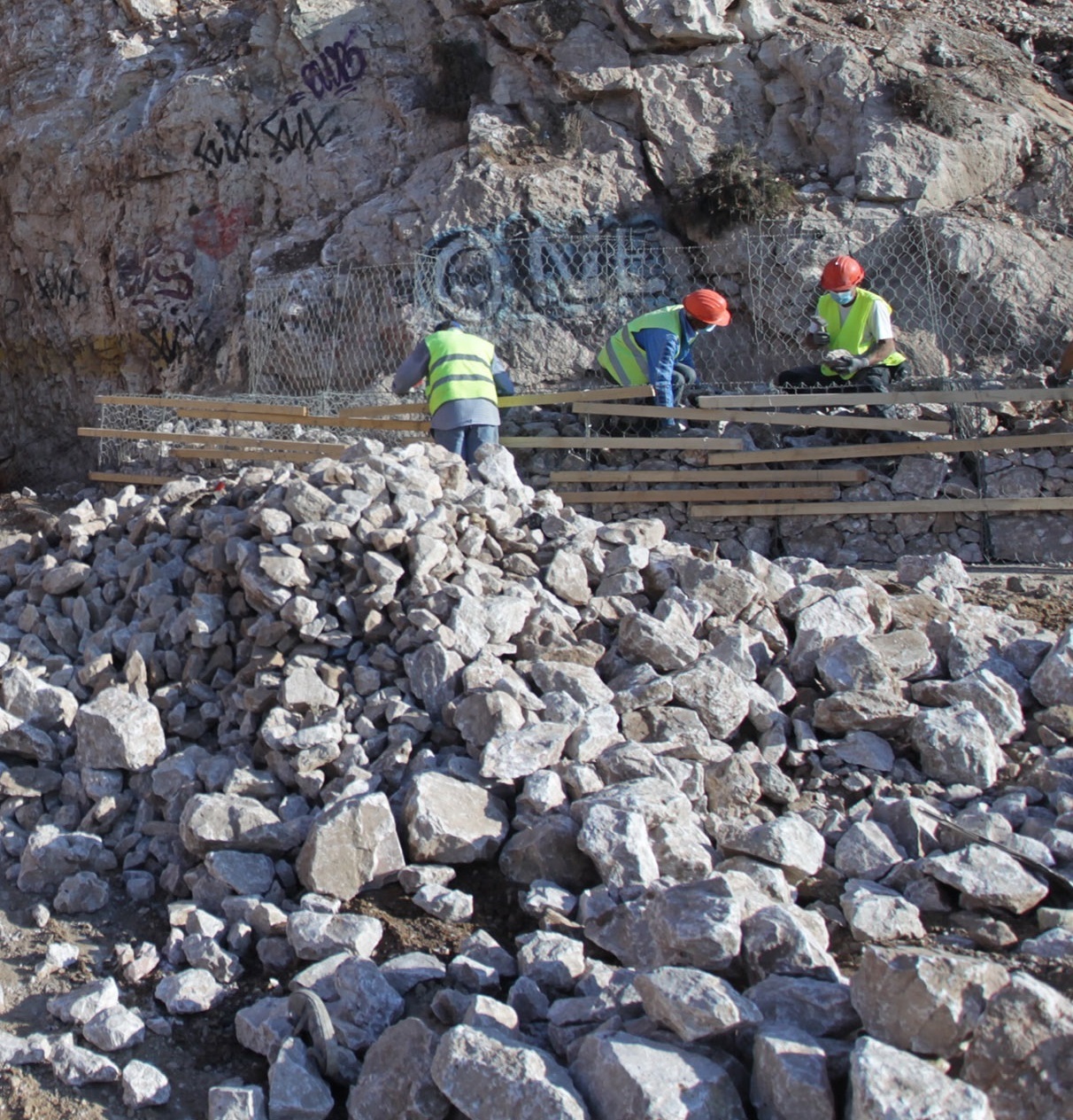 Με εντατικούς ρυθμούς συνεχίζονται από τις 5 Απριλίου οι εργασίες για την «Άρση επικινδυνότητας καταπτώσεων πρανών στον οδικό άξονα Βάρκιζας – Σουνίου πλησίον των σηράγγων (Τρύπες Καραμανλή) στη Βάρκιζα».