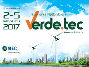 Ύστερα από συστηματική έρευνα στην αγορά, επαφές με επιχειρηματίες και στελέχη εταιρειών αλλά και αναλυτικές διαβουλεύσεις με τις διοικήσεις φορέων του χώρου, η “Verde.Tec” θα διοργανωθεί στο Μεσογειακό Εκθεσιακό Κέντρο (MEC), στην Παιανία από τις 2 έως τις 5 Μαρτίου 2017.